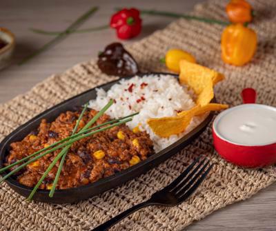 Iubesti mancarea mexicana? Atunci acest Chilli con Carne este pentru tine! Cu un amestec bogat de carne tocata, smantana, ardei jalapeno si ceapa verde, acest preparat picant si aromat este servit alaturi de orez. Este perfect pentru cei care cauta o experienta autentic mexicana la masa la masa de pranz sau cina.