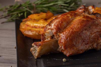 Daca esti in cautarea unui preparat care sa te rasfete cu gustul adevarat de casa, ciolanul de porc este alegrea perfecta. Cu carne frageda, crocanta la exterior si suculenta la interior, acest deliciu culinar este servit cu cartofi la cuptor si salata de varza.
