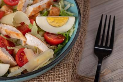 Nimic nu se compara cu o salata Caesar autentica. Aceasta combinatie perfecta de salata iceberg, parmezan ras, crutoane, ou si piept de pui rumenit este completata de celebrul sos Caesar. Cu o textura bogata si un gust complex, aceasta salata este o alegere excelenta pentru cei ce iubesc combinatia de ingrediente proaspete si satioase.