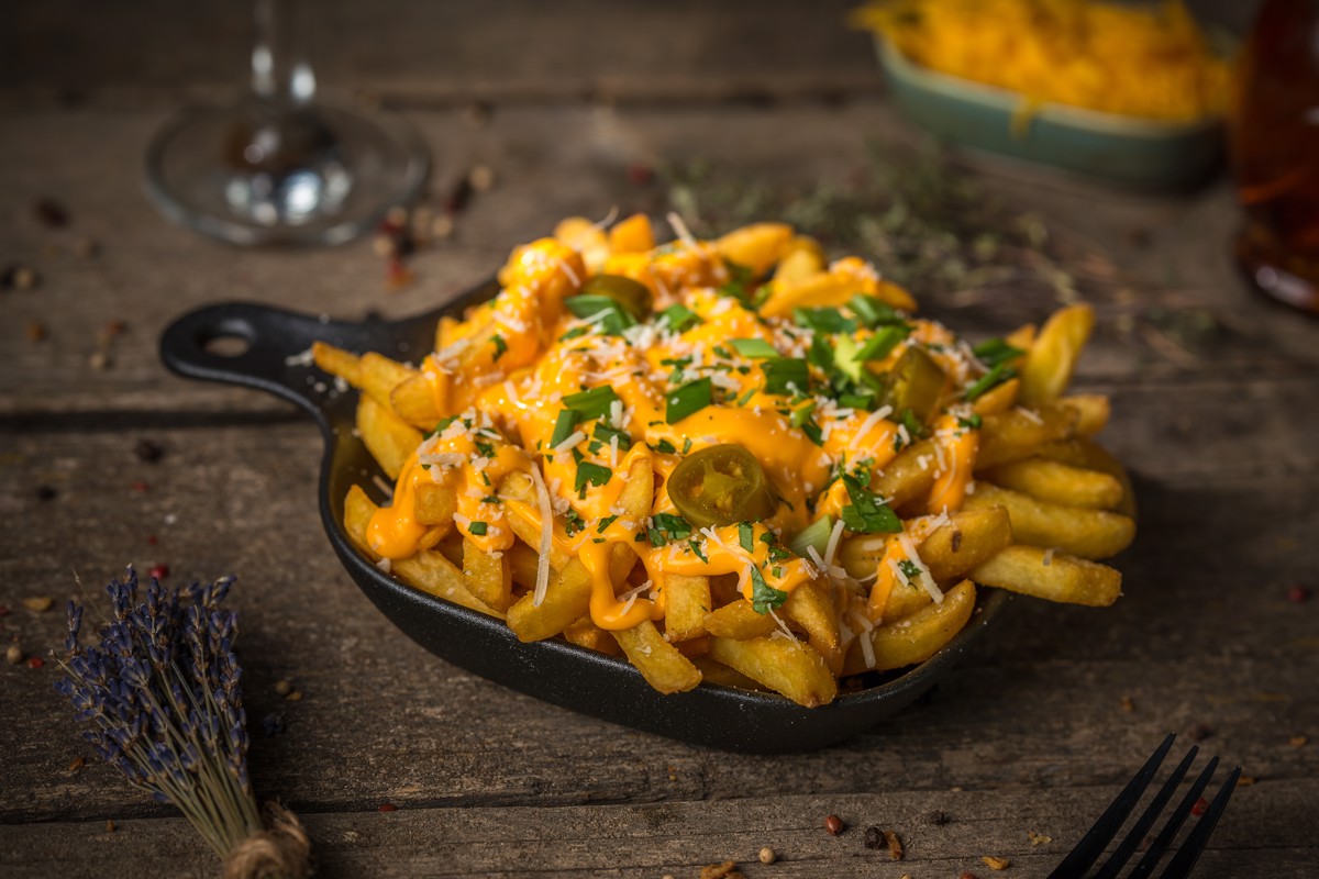 French fries (200 gr), cedar sauce, green onions, parsley. 295 gr.
